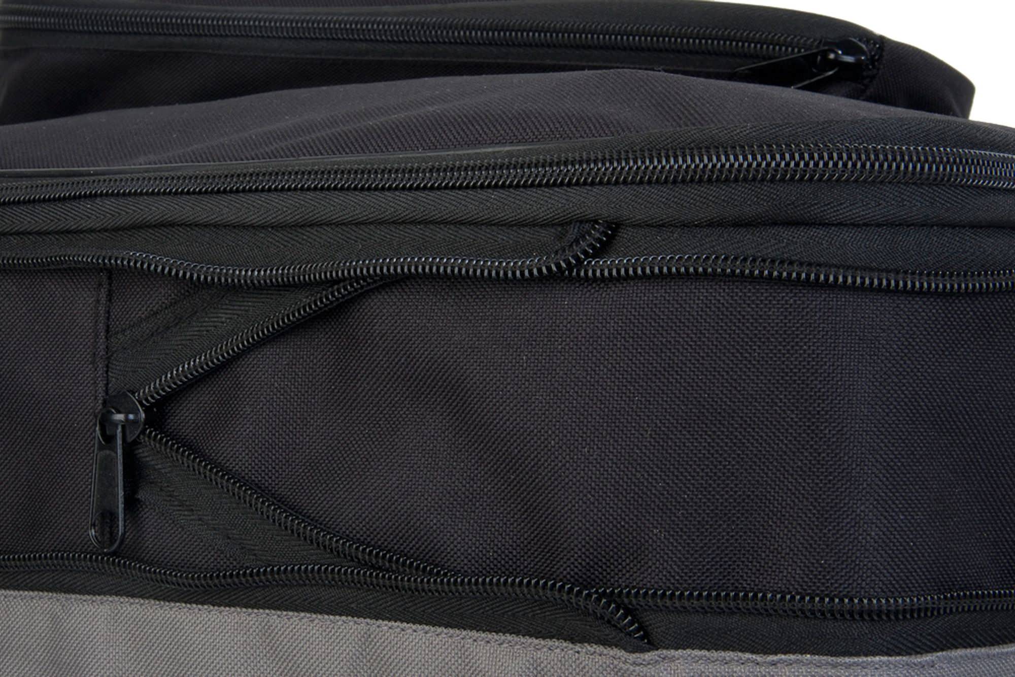 Taschen mit Ziehharmonikareißverschluss an Kofferbreite anpassbar, praktische Innen- und Außentasche (z.B. für Hotelunterlagen). Beidseitlich komplett zu öffnen, leicht zu bepacken, auch im Koffer nutzbar ohne Entnahme, Verstellbarer Schultergurt für maximalen Komfort. Außentasche für die Aussparung im RECHTEN Koffer!
