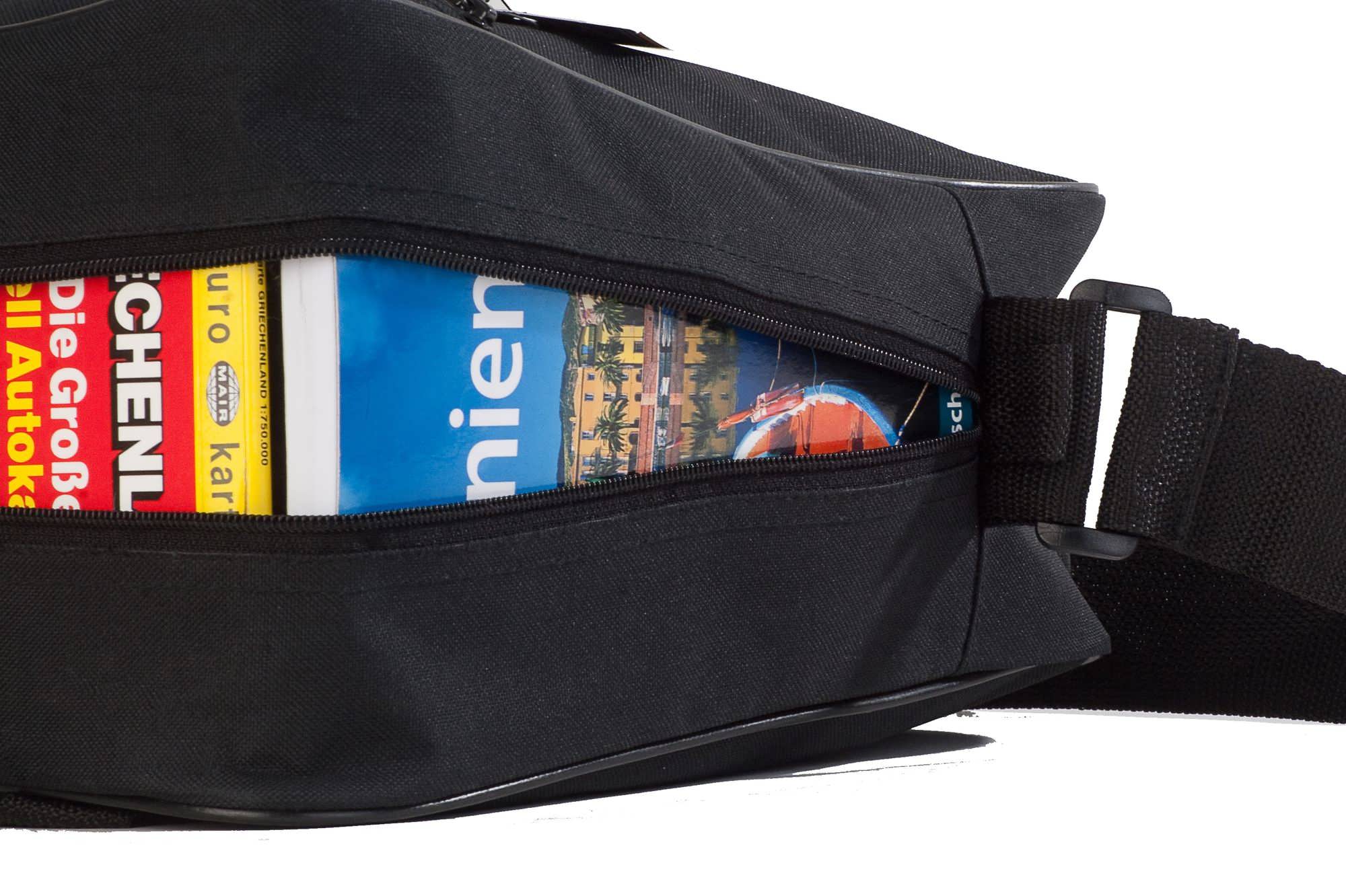 Innentasche mit praktischen Außenfach (z.B. für Hotelunterlagen). Über zwei Seiten komplett zu öffnen, somit leicht zu bepacken. Verstellbarer Schultergurt für maximalen Komfort.